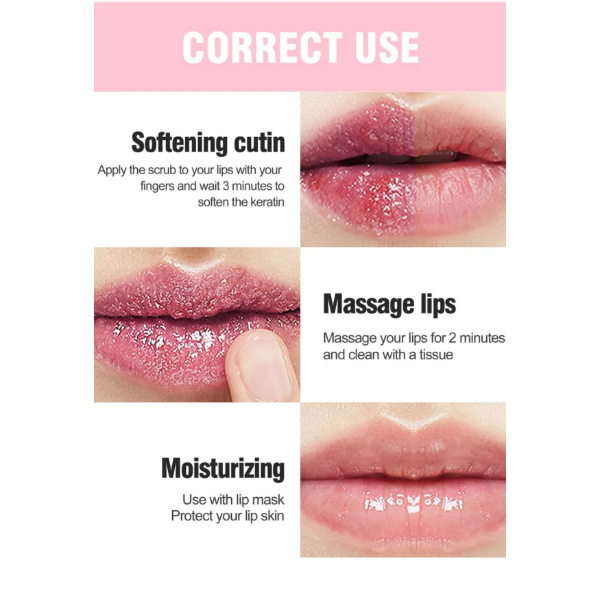 โข Maakt de lippen gladder en zachter door ruwe huid te exfoliรซren.