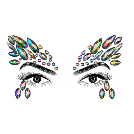 Creeer een fantastische look met onze Diamond Face Gem Maskers met prachtige diamantjes met plaklaag die glinsteren in het licht.