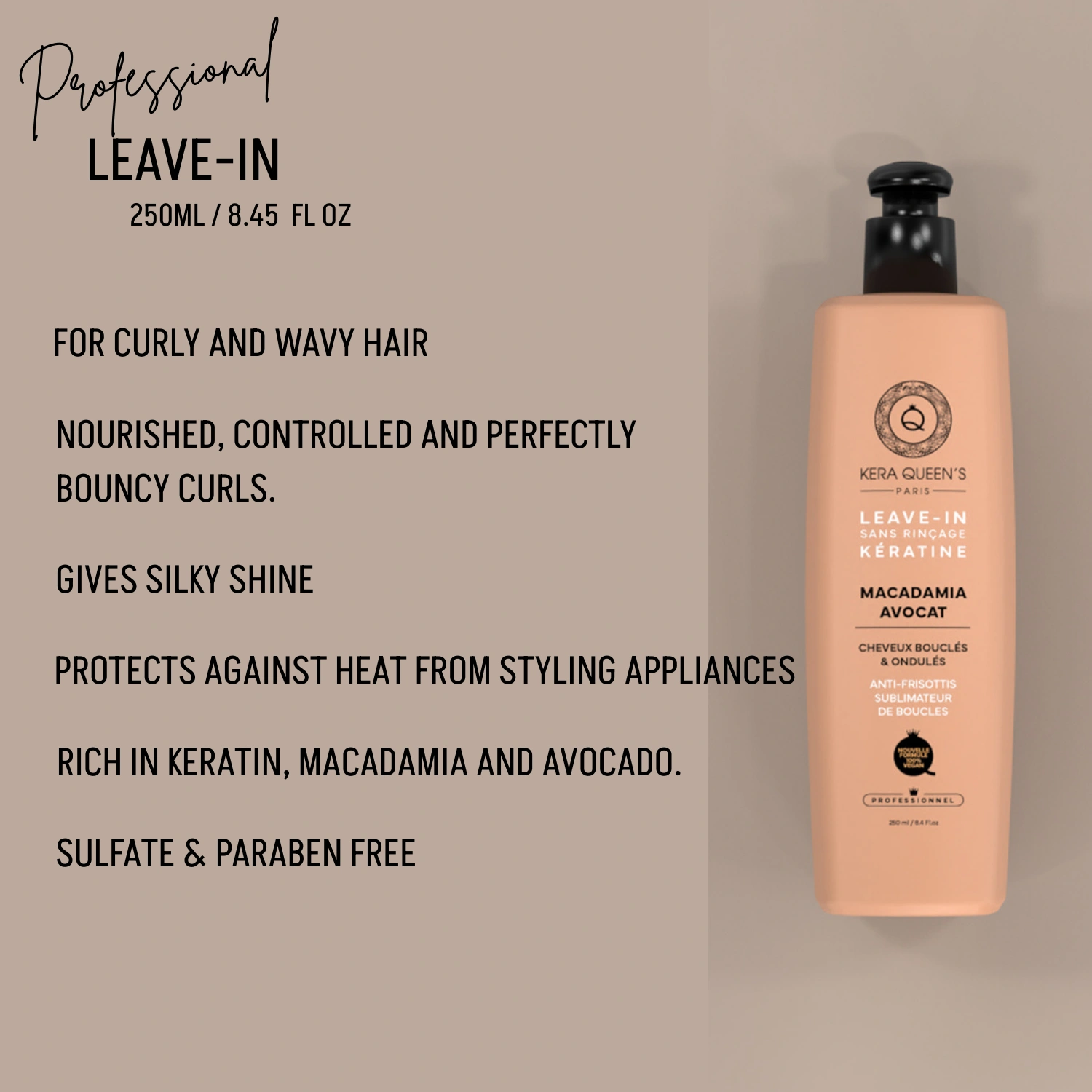 Kera Queens Paris | Professional Leave In Keratin and Macadamia Avocado – 250ml – Vegan